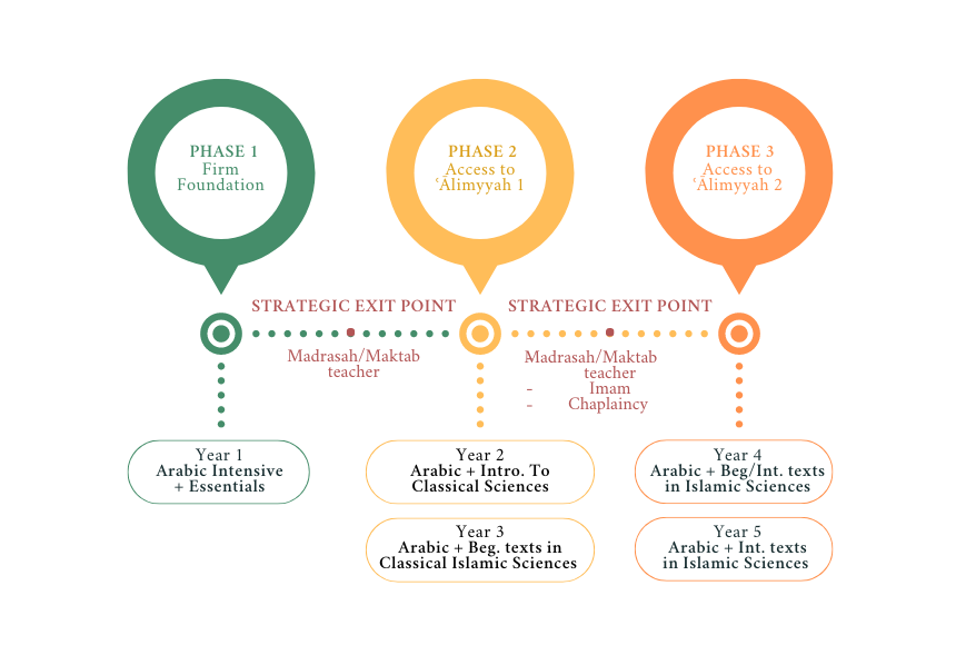 - Arabic Language Studies: Building on the foundation set in phase 1, students will progress to studying separate texts in the core sciences of Arabic grammar, while reading literature in classical Arabic honing their application skills.